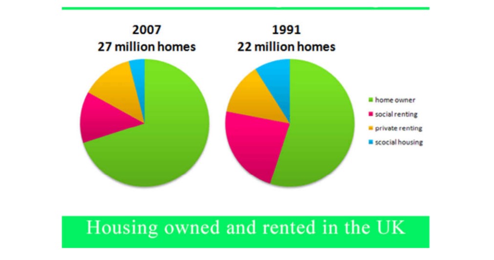 Sample Answer of Percentage of Housing Owned and Rented in the Uk in 1991 and 2007